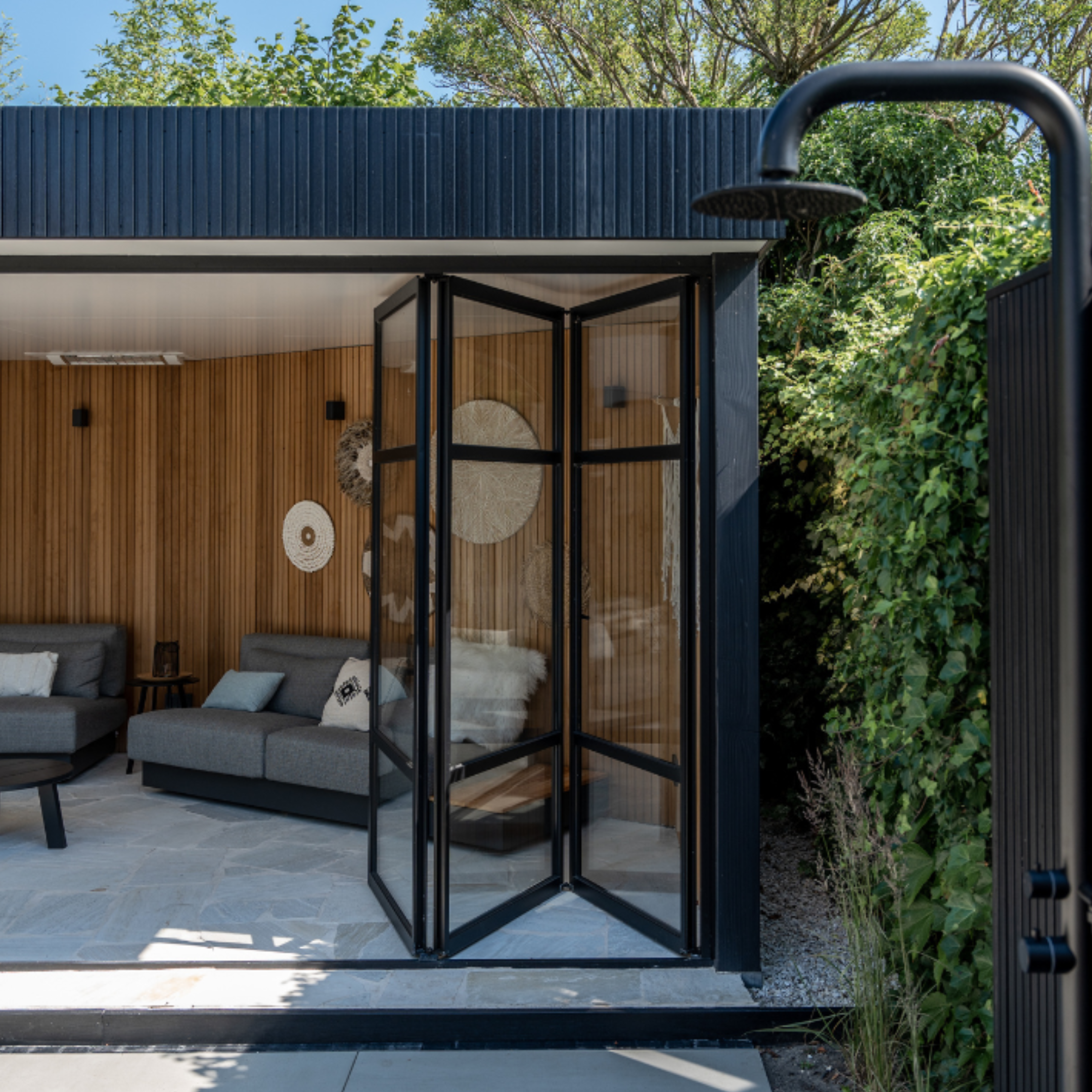Vouwwand: vrijwel volledige opening, architectonische impact, maximale verbinding met de tuin, ideaal voor grote gevelopeningen
